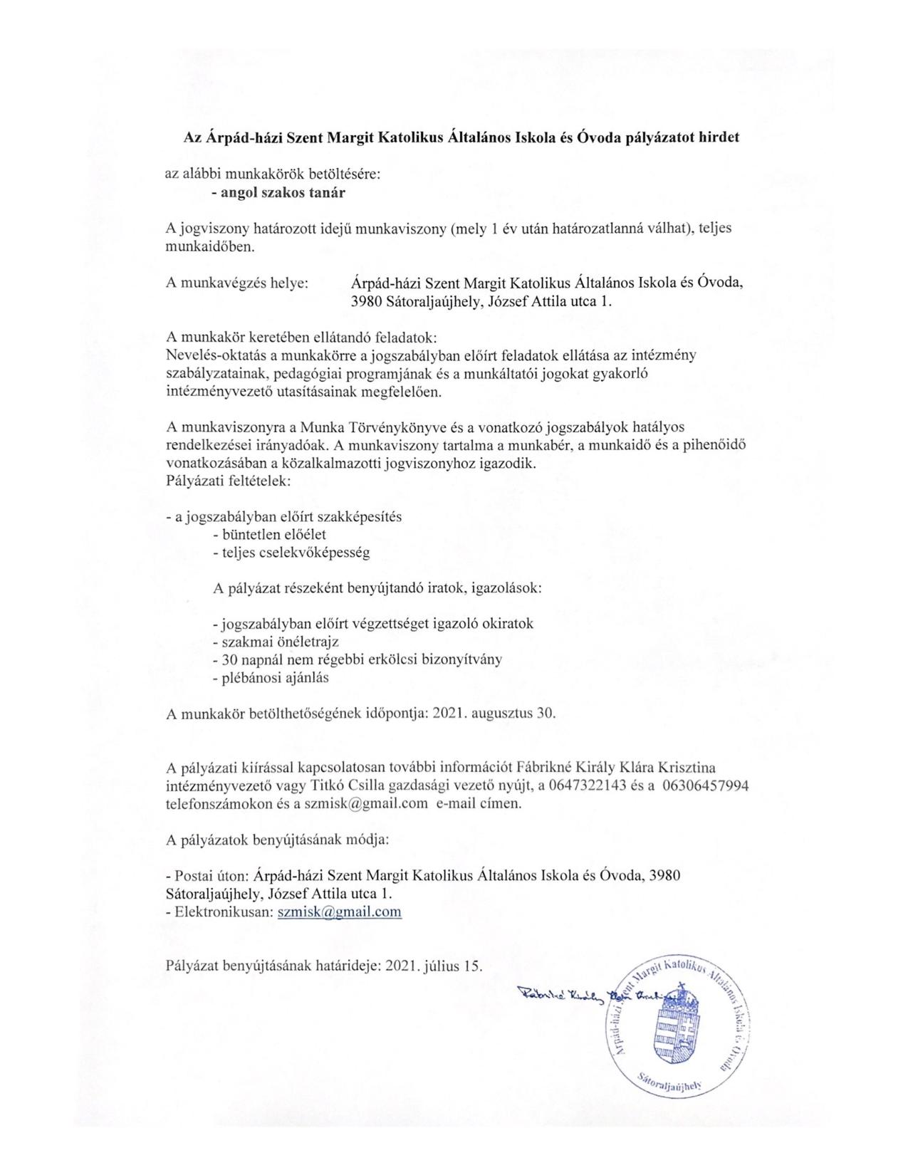Honlap: www.arpadhaziszentmargit.hu